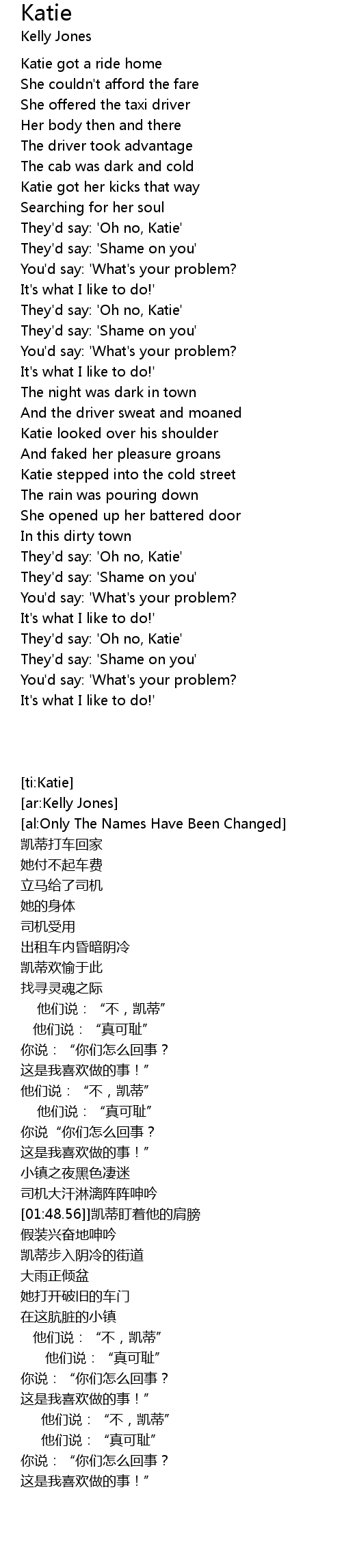 Katie got her kicks that way |