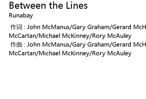 | [00:00.000] | 作词 : John McManus/Gary Graham/Gerard McHugh/Declan McCartan/Michael McKinney/Rory McAuley |