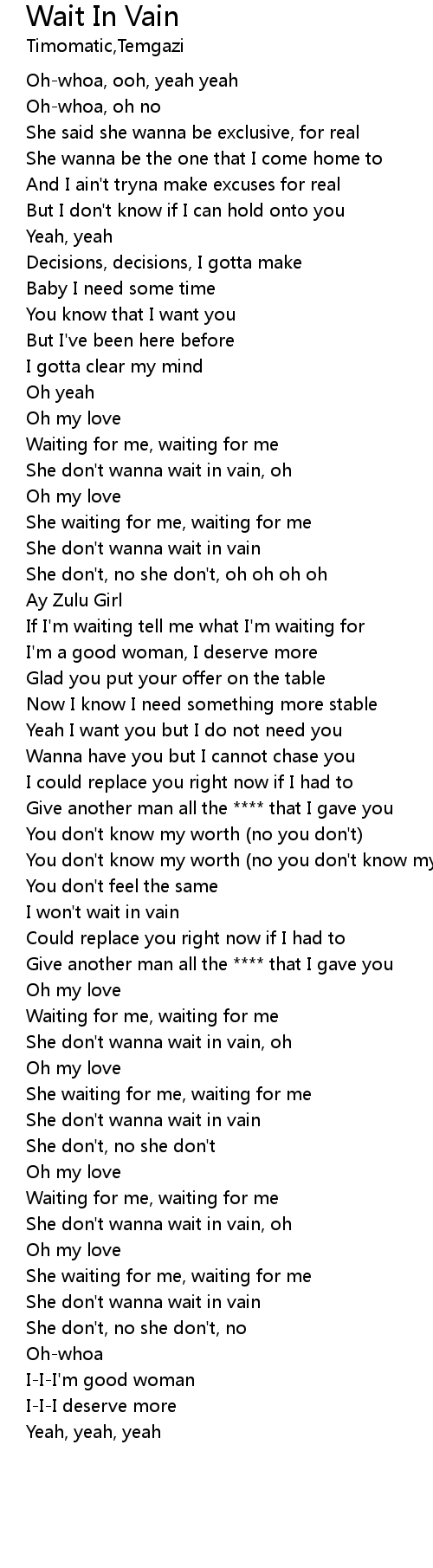 | [01:05.50] | She don't wanna wait in vain, oh |