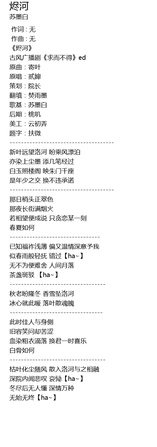| 歌曲 | 烬河 |