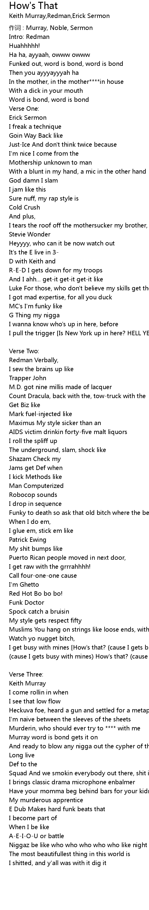 | I get busy with mines [How's that? (cause I gets busy with mines) How's that? (cause I gets busy with mines) How's that? (cause I gets busy with mines) How's that? (cause I gets busy with mines It's Keith Murray)] | |