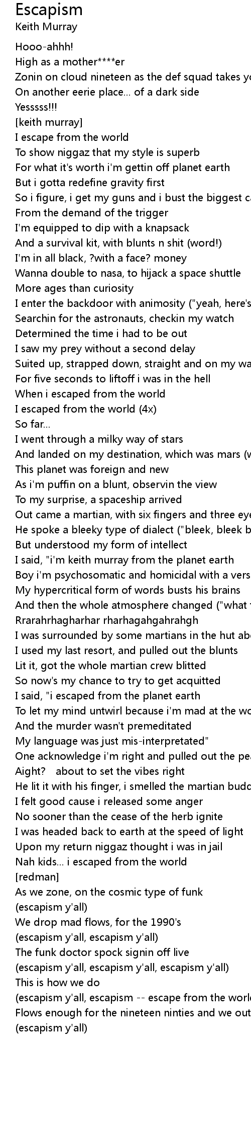| (escapism y'all, escapism y'all, escapism y'all) | |