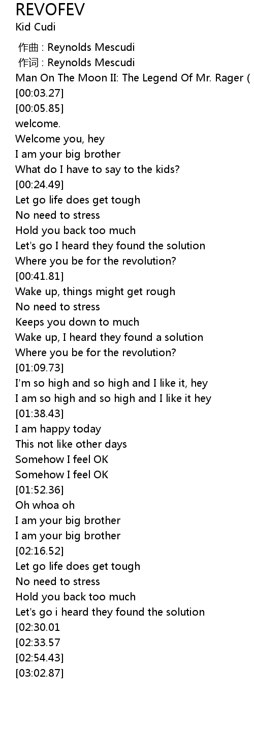| [00:01.40] | Man On The Moon II: The Legend Of Mr. Rager 2010 |