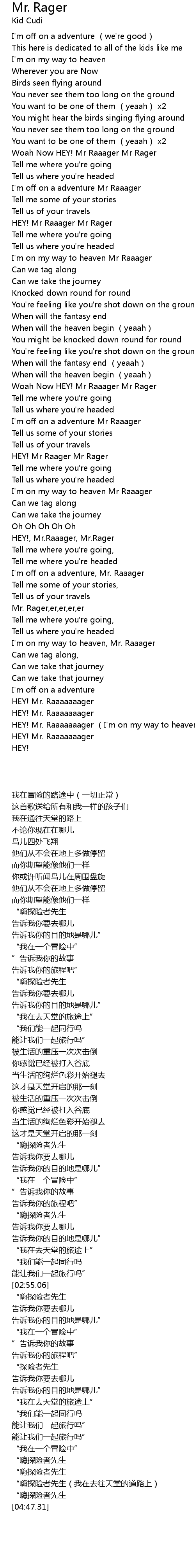 | [02:35.69] | HEY! Mr Raager Mr Rager |