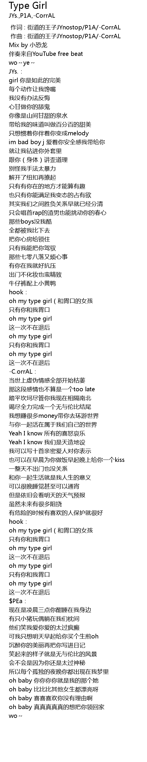 | [02:01.284] | oh my type girl(和胃口的女孩 |