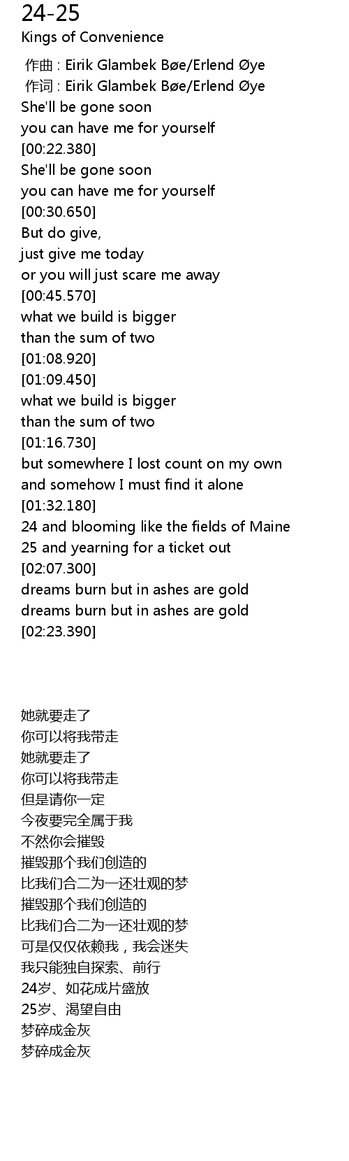 | [00:25.190] | She' ll be gone soon |