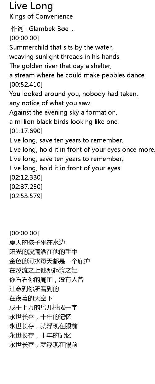 | [01:58.800] | Live long, save ten years to remember, |