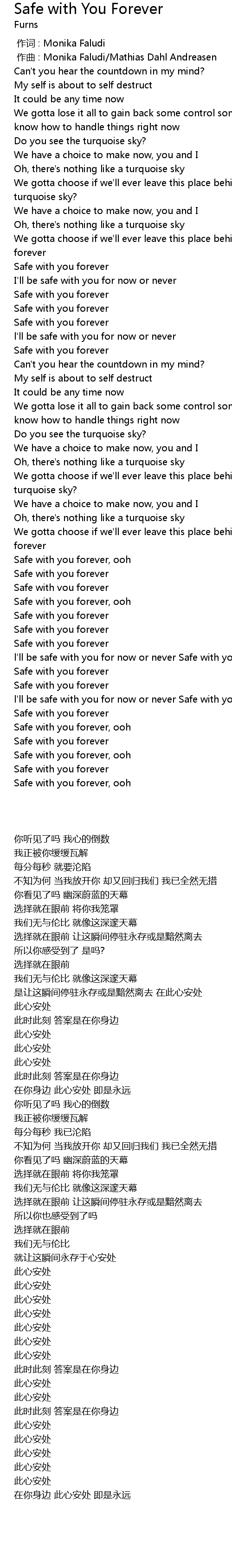 | 歌曲 | Safe with You Forever |
