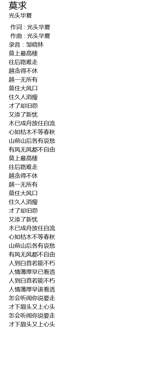 | [00:01.000] | 作曲 : 光头华夏 |