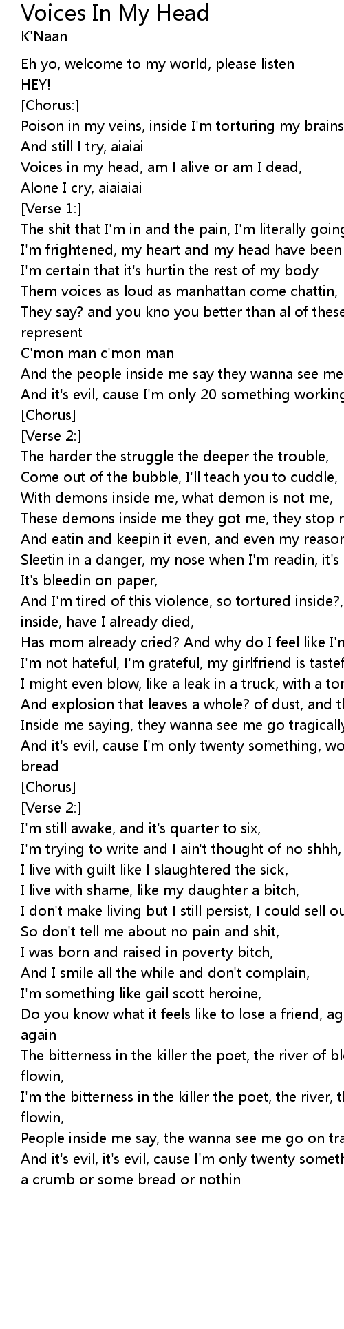 Voices in my head, am I alive or am I dead, |