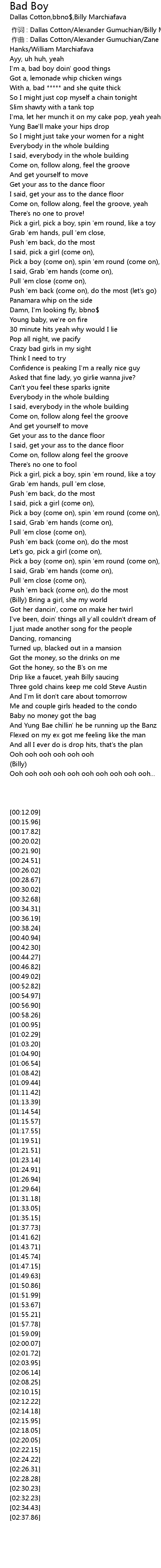 | [00:15.96] | I'm a, bad boy doin' good things |