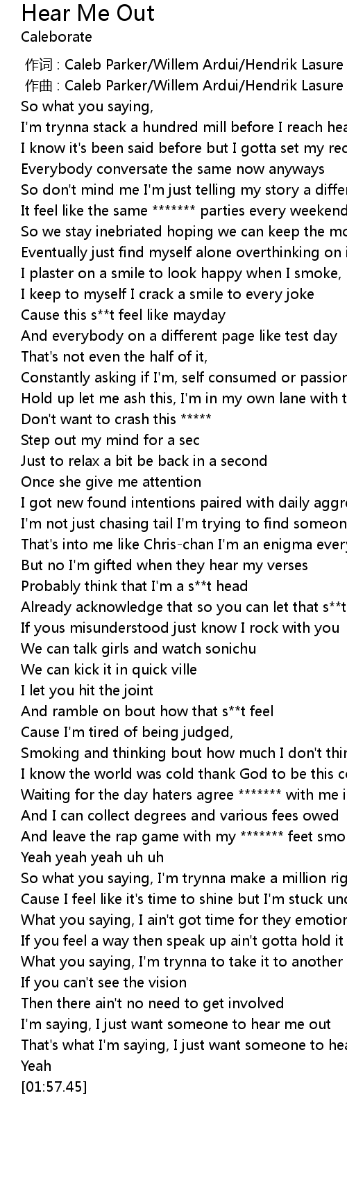 | [01:50.97] | I'm saying, I just want someone to hear me out |