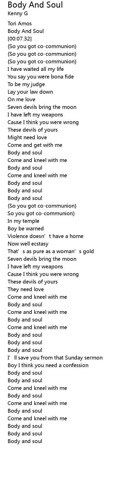 | [03:20.00] | Body and soul |