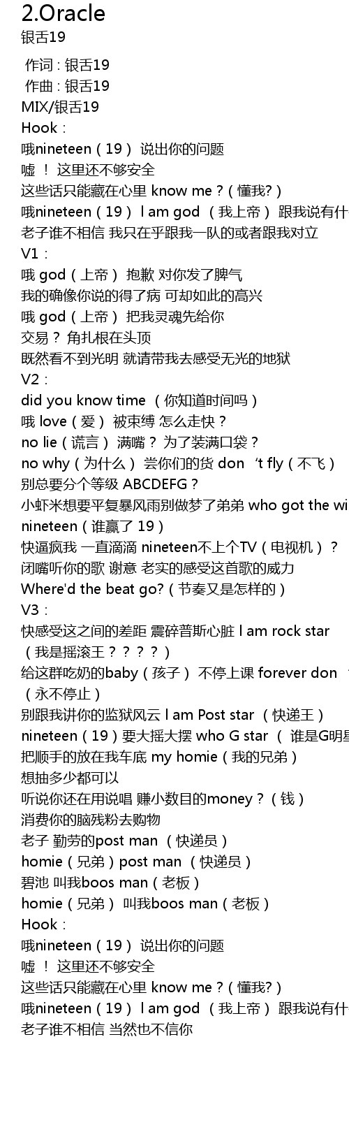| [02:15.389] | 哦nineteen(19) l am god (我上帝) 跟我说有什么关系 |
