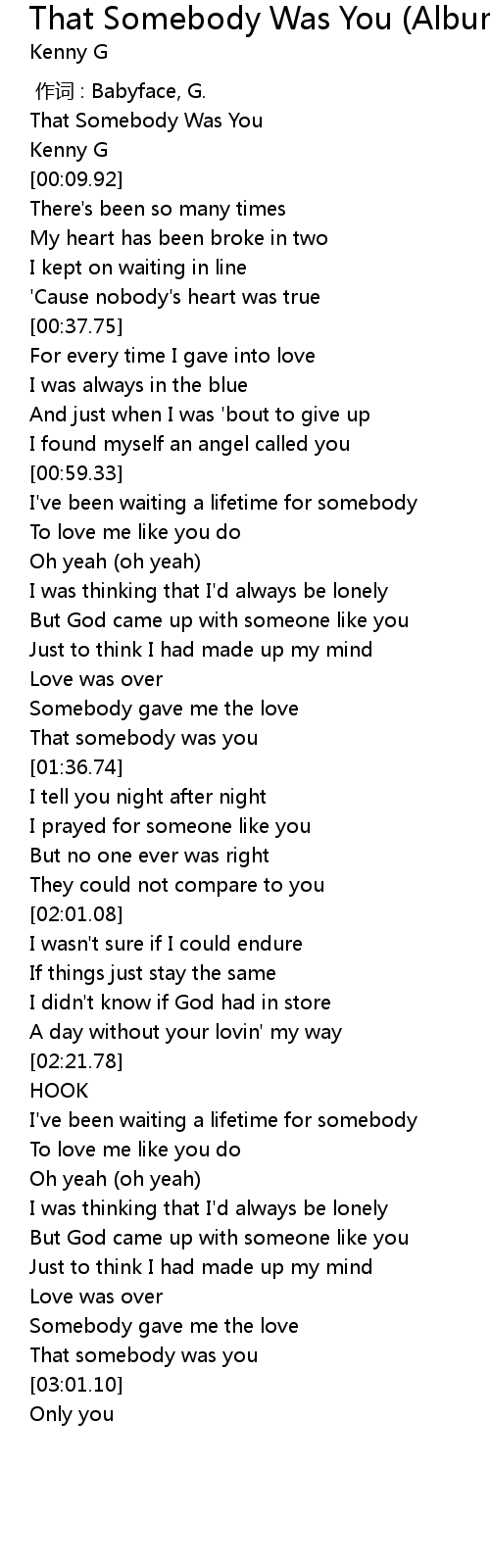 | [00:02.10] | That Somebody Was You |