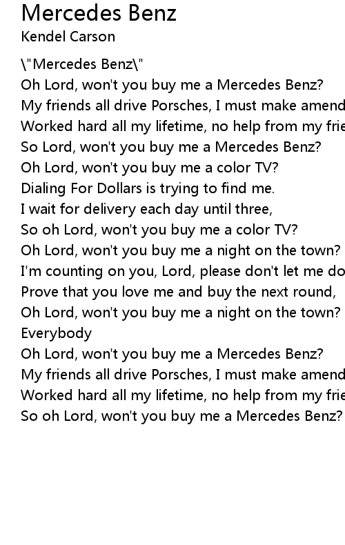 Oh Lord, won't you buy me a Mercedes Benz? |