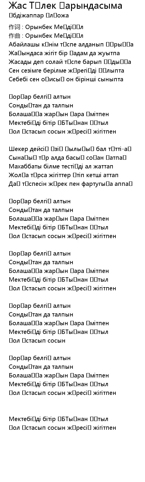 作词 : Орынбек Меңдіқұл |
