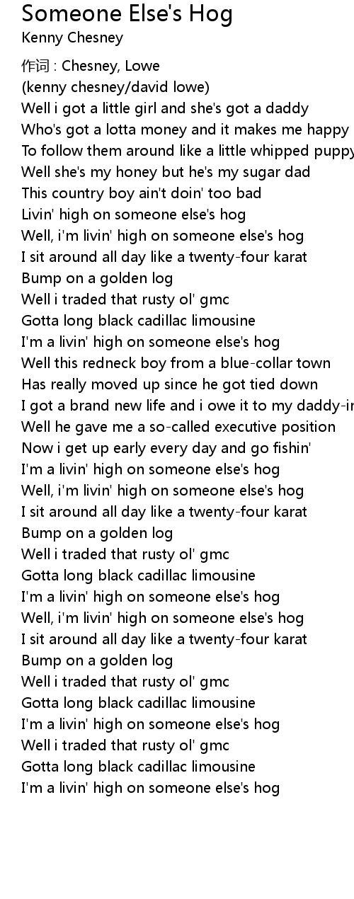 | I'm a livin' high on someone else's hog | |