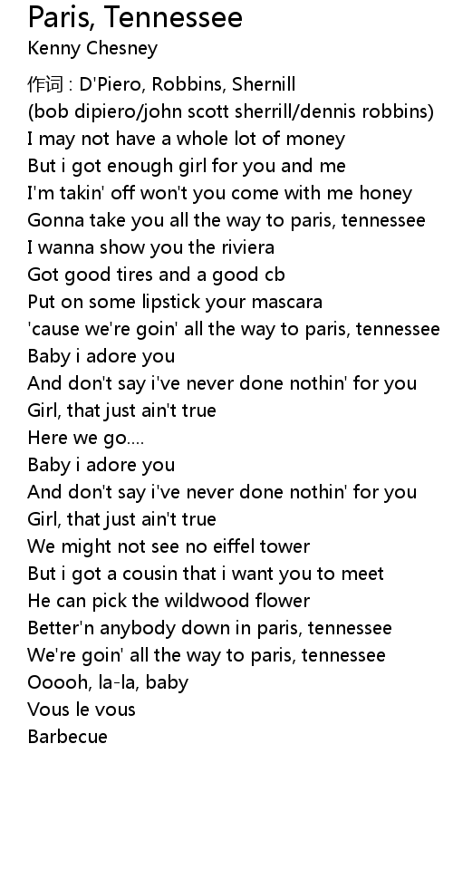 | ' cause we' re goin' all the way to paris, tennessee | |