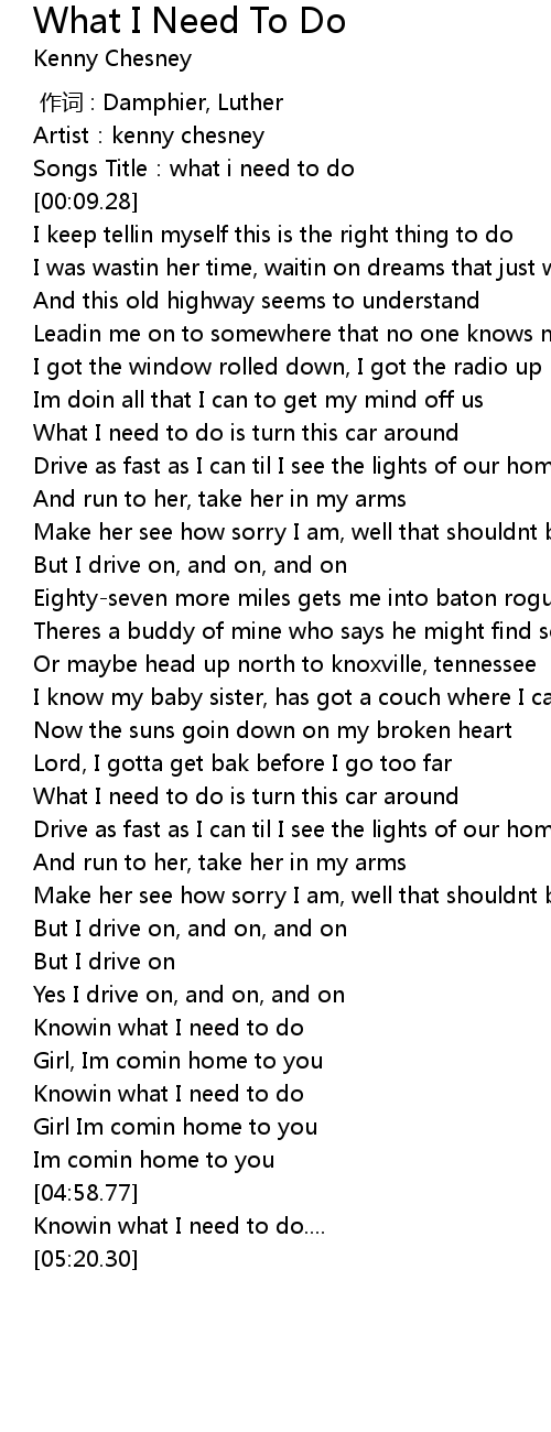 | [00:04.91] | Songs Title: what i need to do |