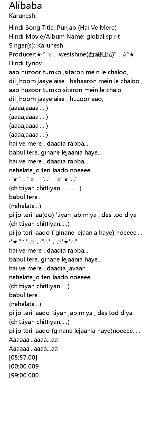 | [00:02.00] | Hindi Song Title: Punjab (Hai Ve Mere) |