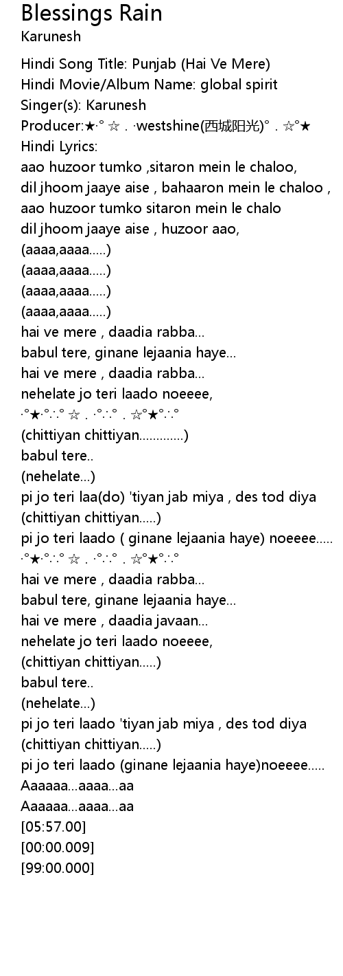 | [00:02.00] | Hindi Song Title: Punjab (Hai Ve Mere) |