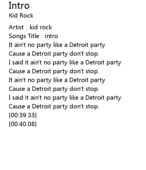 | [00:03.22] | It ain' t no party like a Detroit party |