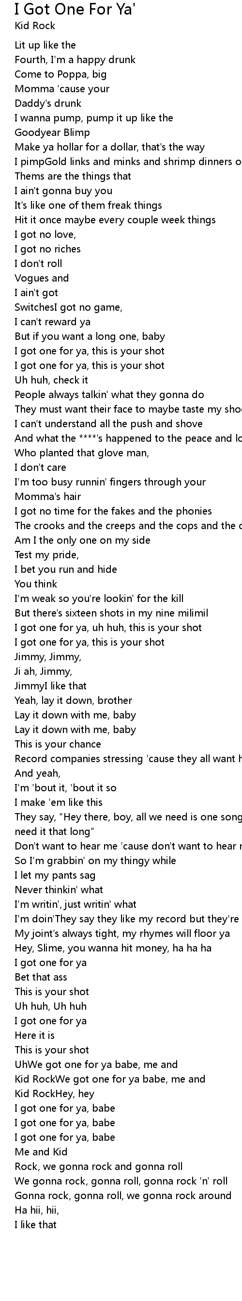 Kid RockWe got one for ya babe, me and |