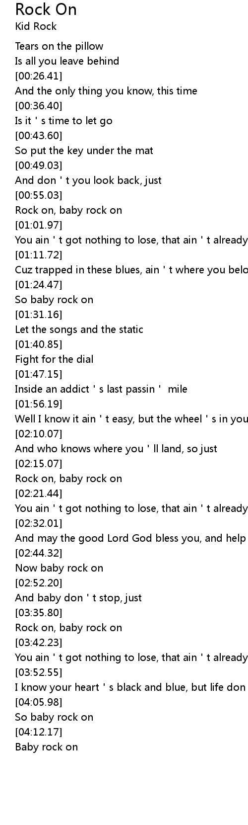 | [02:24.95] | You ain t got nothing to lose, that ain t already gone |