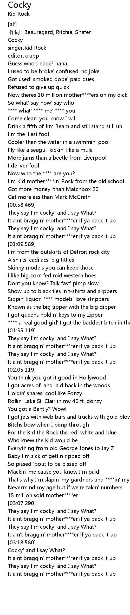| [00:54.259] | I'm Kid mother****in' Rock from the old school |