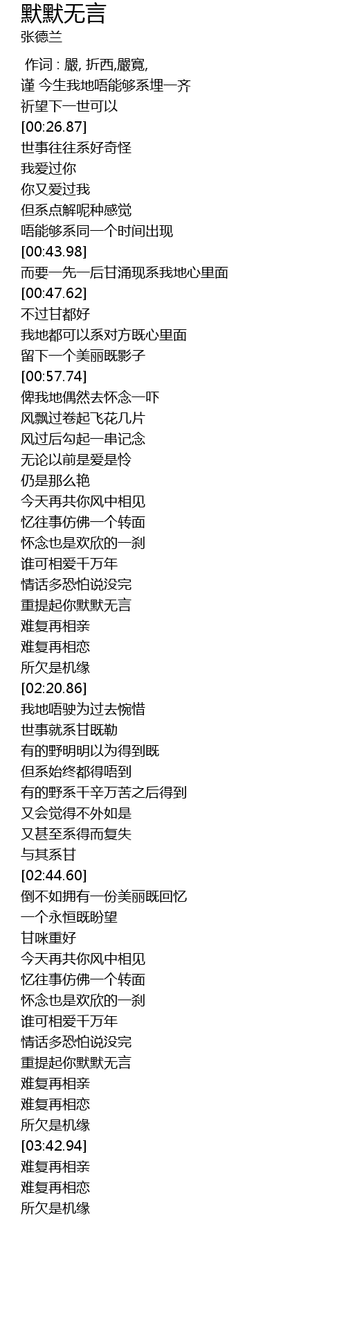 | [02:02.53] | chóng tí qǐ nǐ mò mò wú yán |