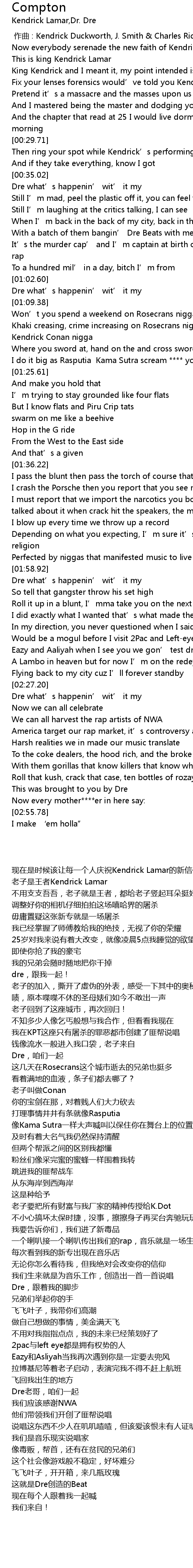 | [00:10.34] | 现在是时候该让每一个人庆祝Kendrick Lamar的新信仰 |