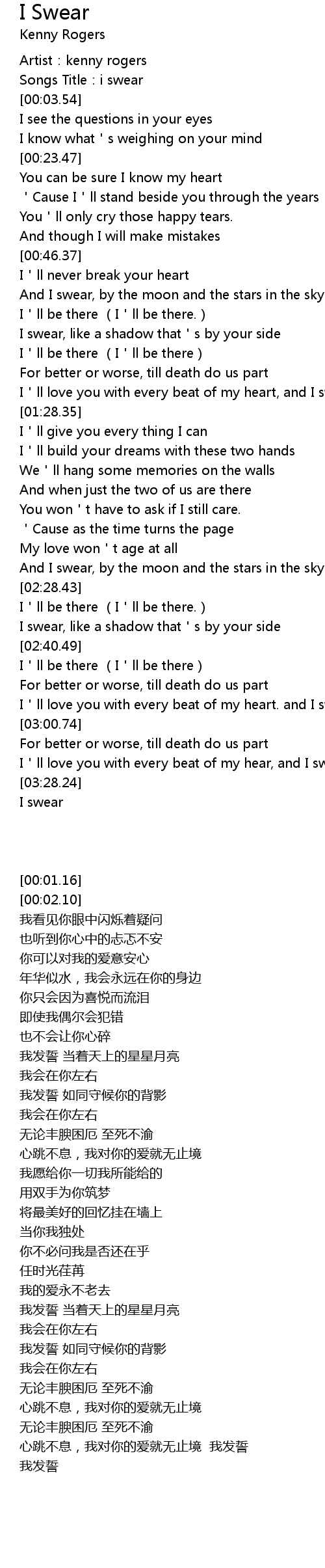 | [00:02.10] | Songs Title:i swear |