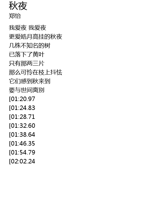 | [03:07.88][01:46.35] | 更爱皓月高挂的秋夜 |
