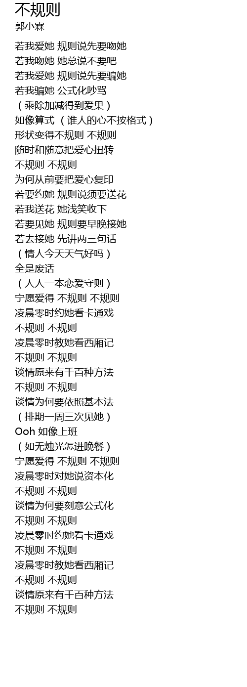| [02:52.100] | 宁愿爱得 不规则 不规则 |