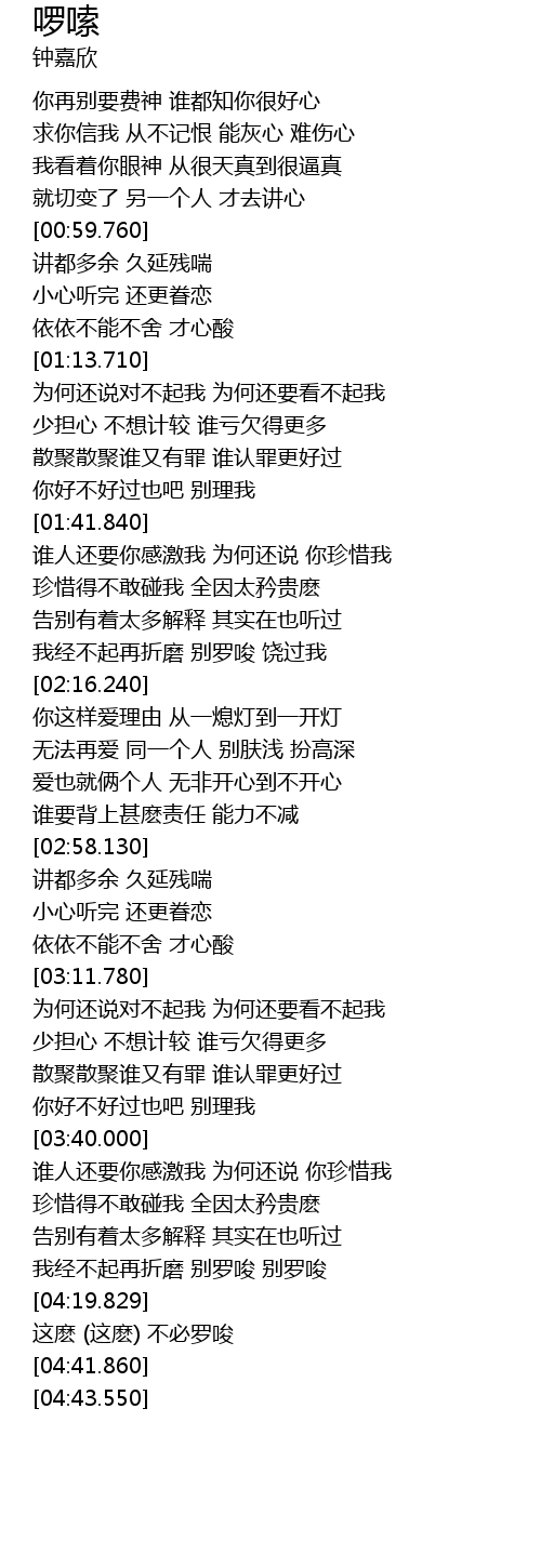 | [04:01.560] | 我经不起再折磨 别罗唆 别罗唆 |