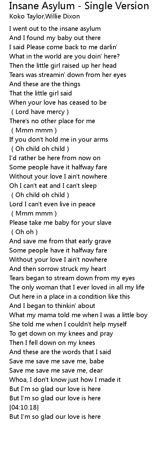 | [00:16.79] | I went out to the insane asylum |