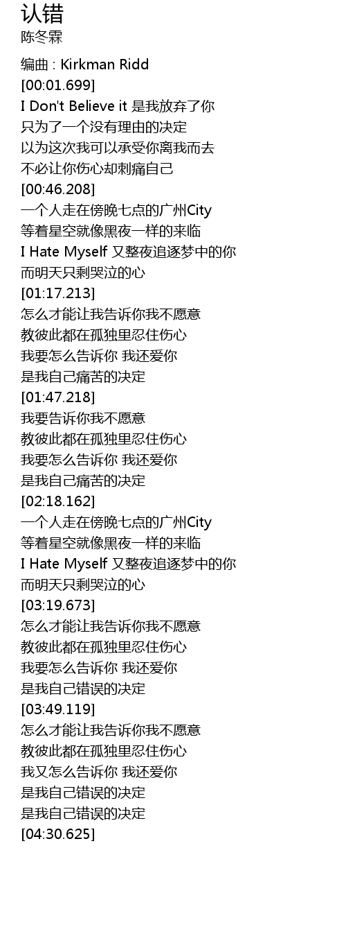 | [04:11.873] | 是我自己错误的决定 |