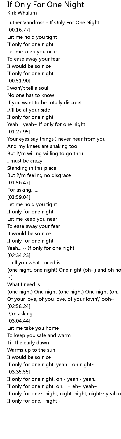 If only for one~ night, night, night, night~ yeah one night~ |