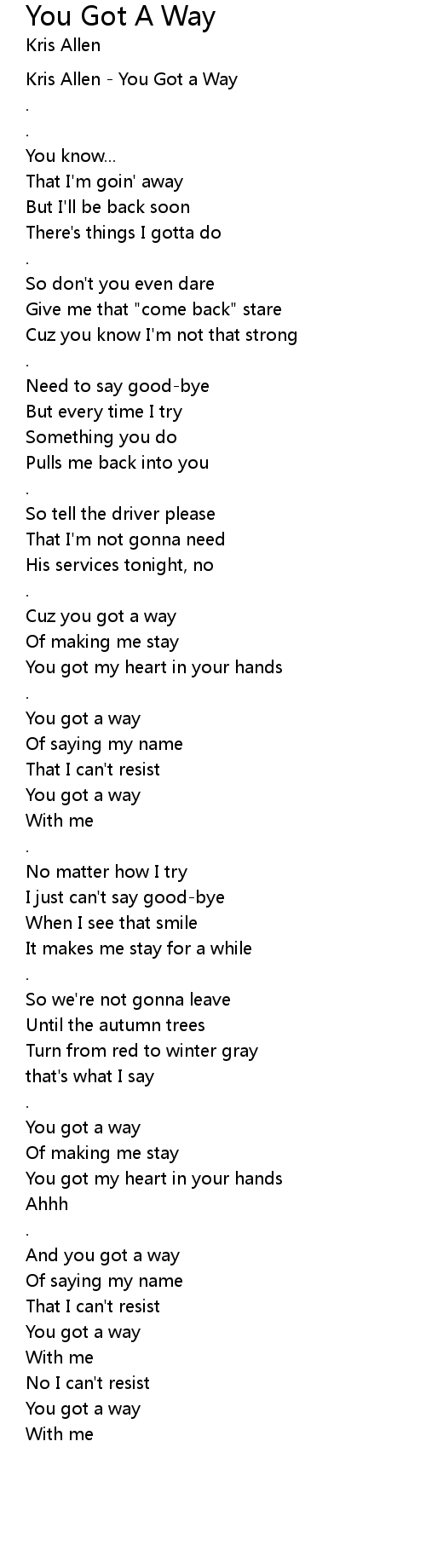You got a way |