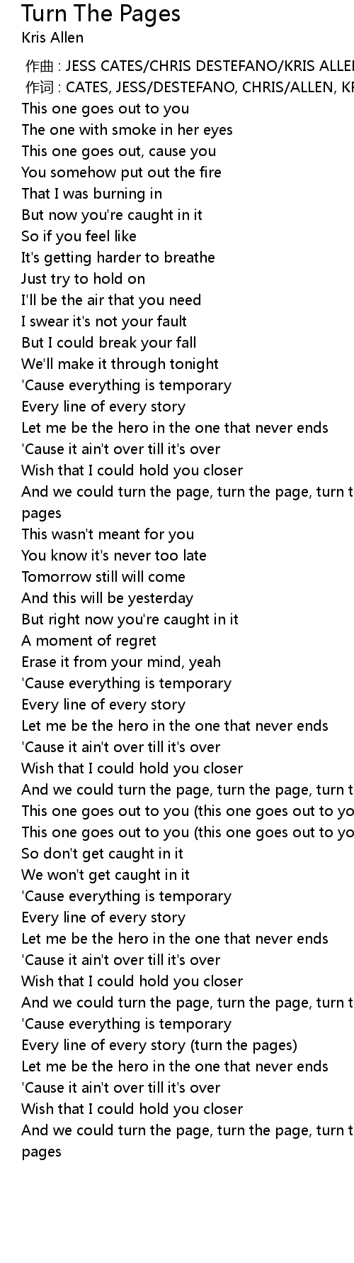 | [00:53.50] | And we could turn the page, turn the page, turn the pages, turn the pages |