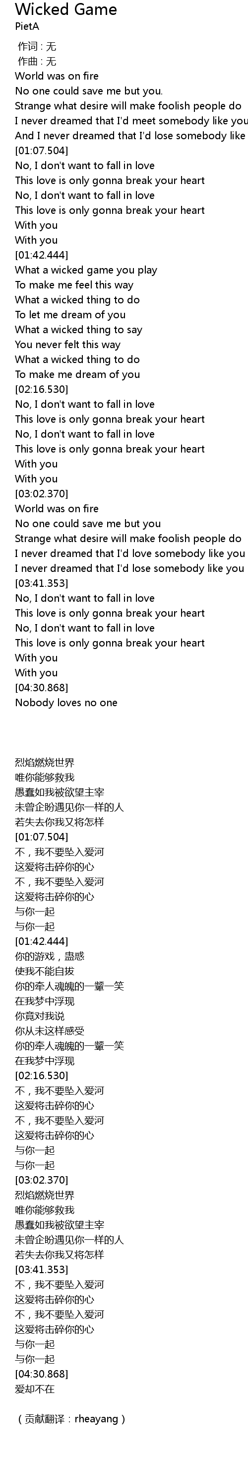 | [01:44.150] | What a wicked game you play |