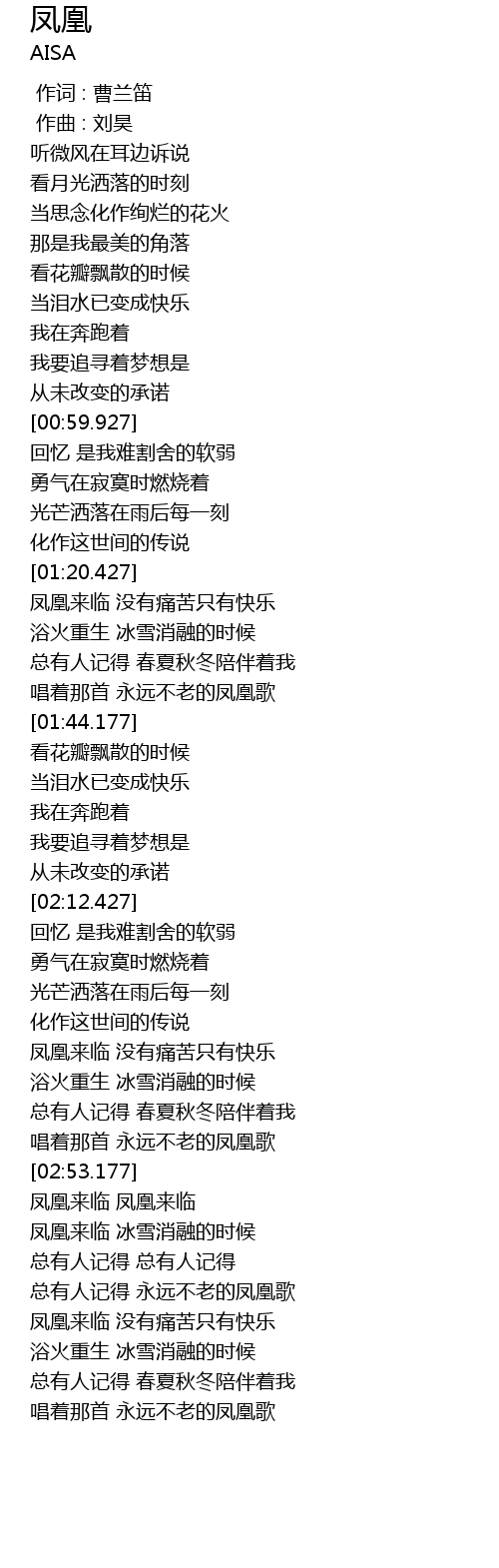 | [02:54.428] | 凤凰来临 凤凰来临 |