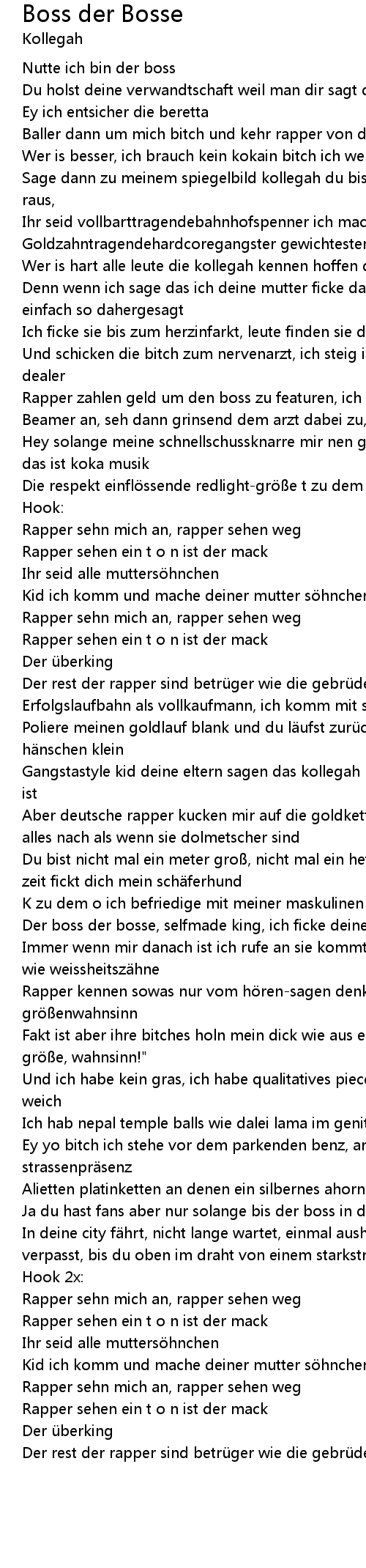 | Rapper zahlen geld um den boss zu featuren, ich fahr dich im tiefergelegten | |