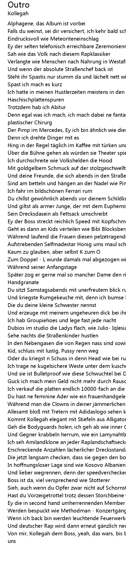| Von mir, Kollegah dem Boss, yeah, das wars, bis bald meine Freunde, wir sehen uns |