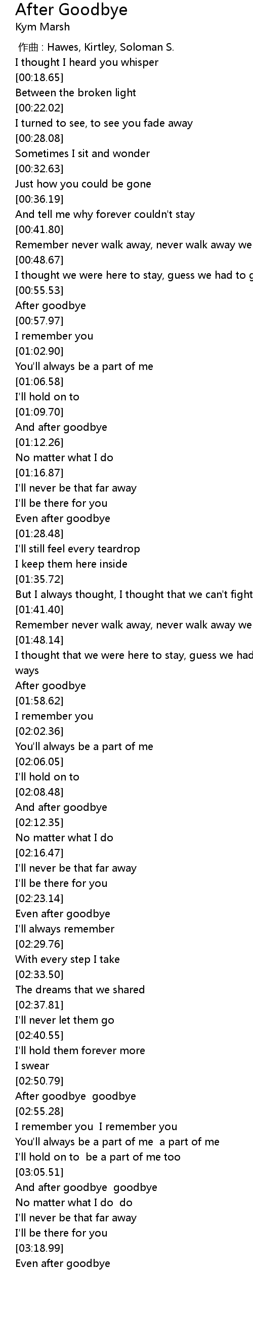 | [01:55.69] | After goodbye |