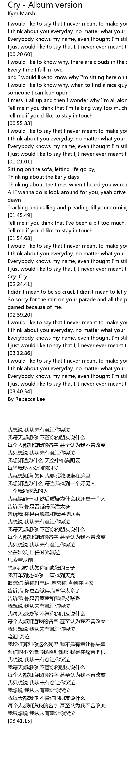 I just would like to say that I, I never ever meant to make you Cry |