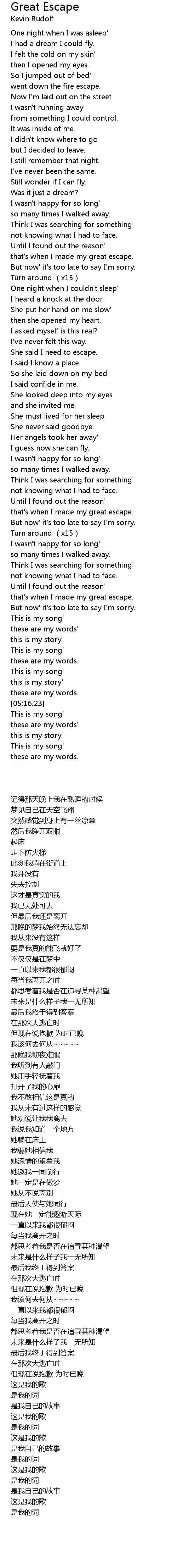 | 歌曲 | Great Escape |