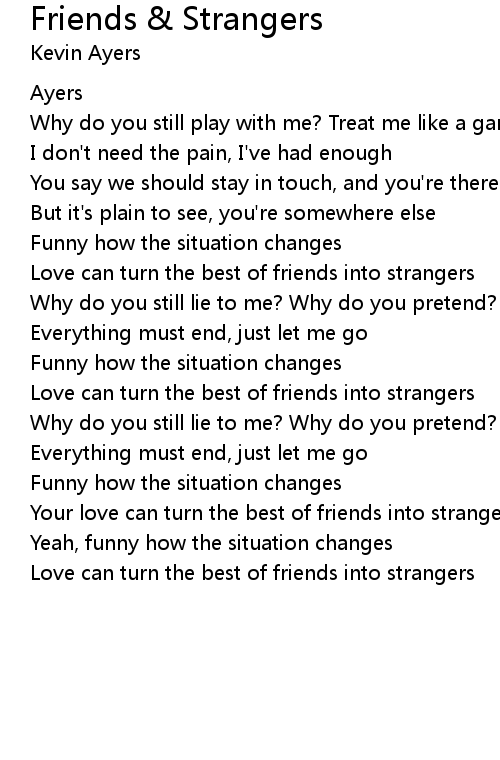 Your love can turn the best of friends into strangers |