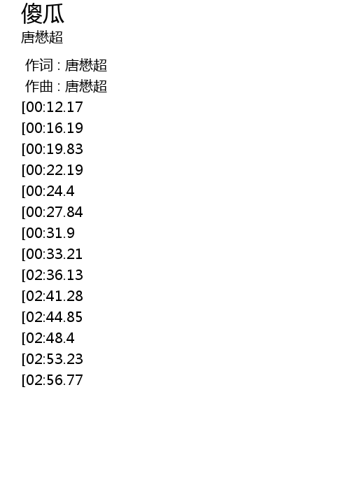 | [03:24.6][02:36.13][01:48.3][00:35.88] | 你就当我是傻瓜 傻瓜 傻瓜 |